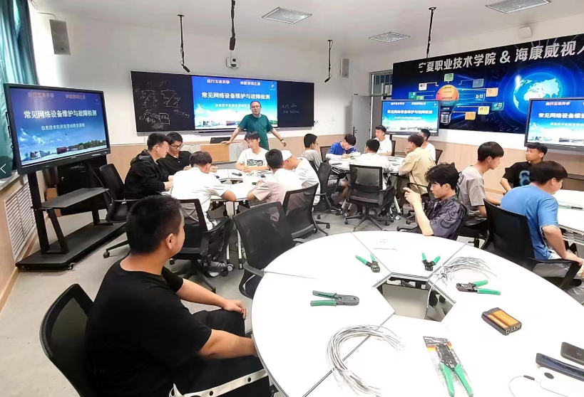 2023年5月19日下午,在伟德体育海康威视人工智能联合实训室,来自工业工程公司的26名同学,参加了主题为“常见网络设备维护与故障检测”劳动教育活动。