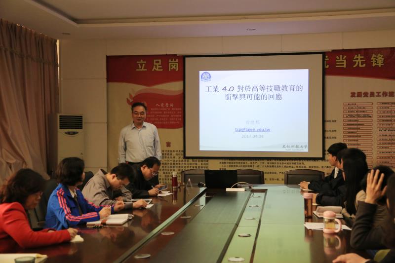 4月6日,台湾大仁科技大学资讯工程与娱乐科技系主任曾世邦莅临伟德体育,为伟德体育全体教师及员工代表带来了题为《工业4.0对于高等技职教育的冲击与可能的回应》的专题讲座。