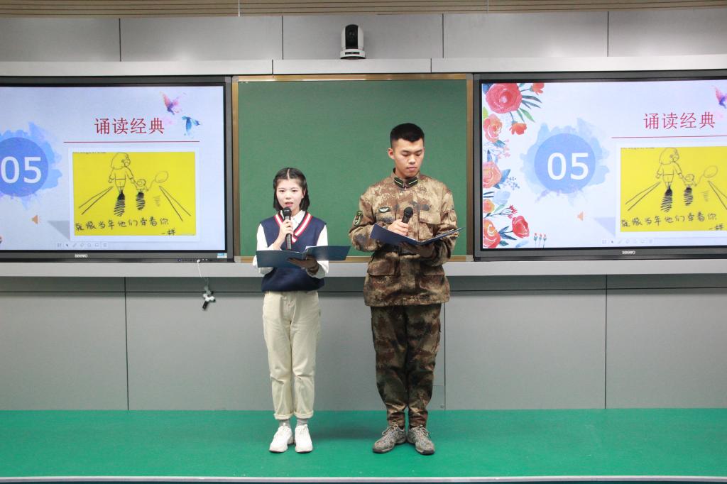在主持人描述的一个个画面中同学们默默回忆起父母辛劳付出的一个个感动瞬间;经典深情诵读中,同学们懂得是那些曾帮助过我们的人,用暖暖的心灯让我们发现生命的丰富;感动中国视频环节,主人公用坚韧和笑容诠释了孝道的感人故事;“唱支歌儿”环节,同学们同声歌唱了《父亲》,歌声表达的是他们对父母深厚的爱;青春誓词环节,同学们一张张坚定的脸庞,一句句以青春名义的宣誓再一次将活动推向高潮;“感悟体会”环节,同学们感情真挚,感恩父母、老师,感恩同学。