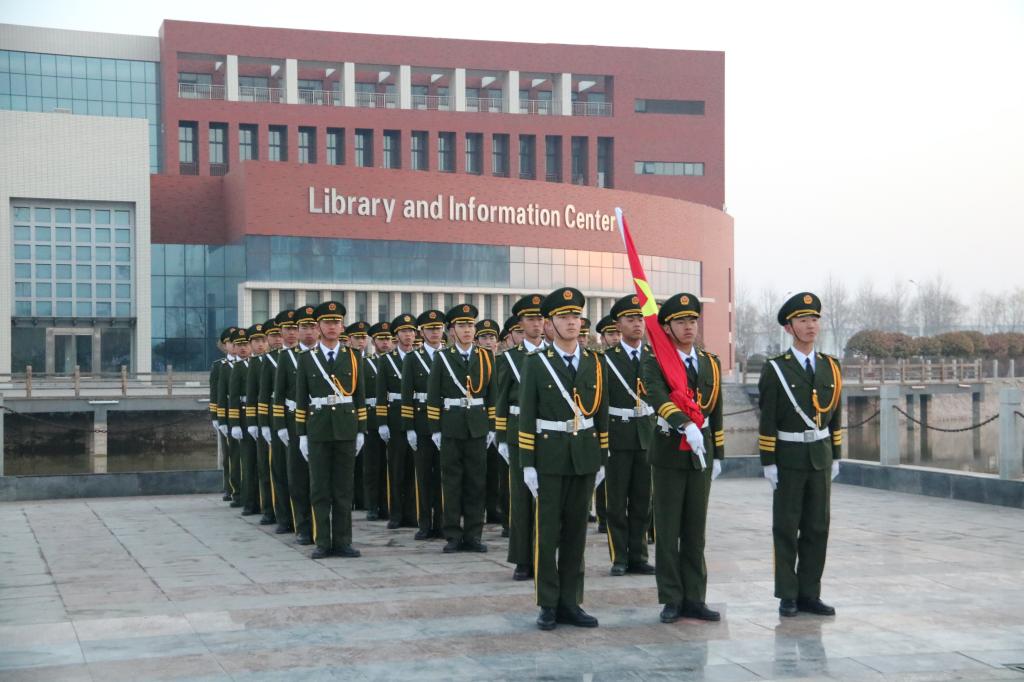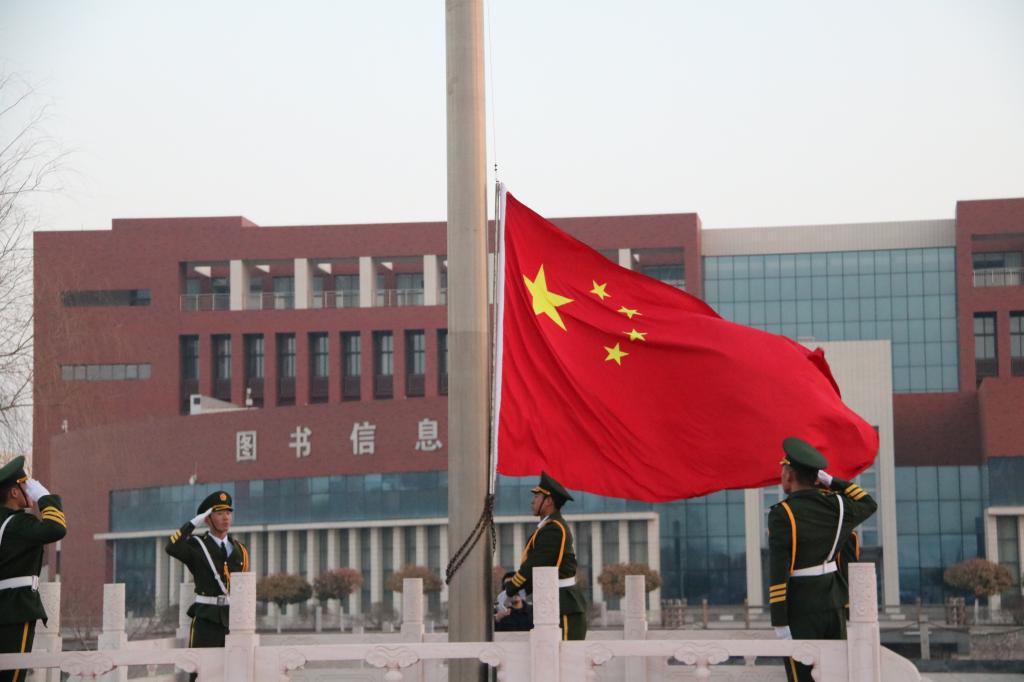 “全体肃立,奏国歌,升国旗”,随着口令,雄壮的《义勇军进行曲》响起,五星红旗冉冉升起。全体师生向国旗行注目礼,现场庄严肃穆。