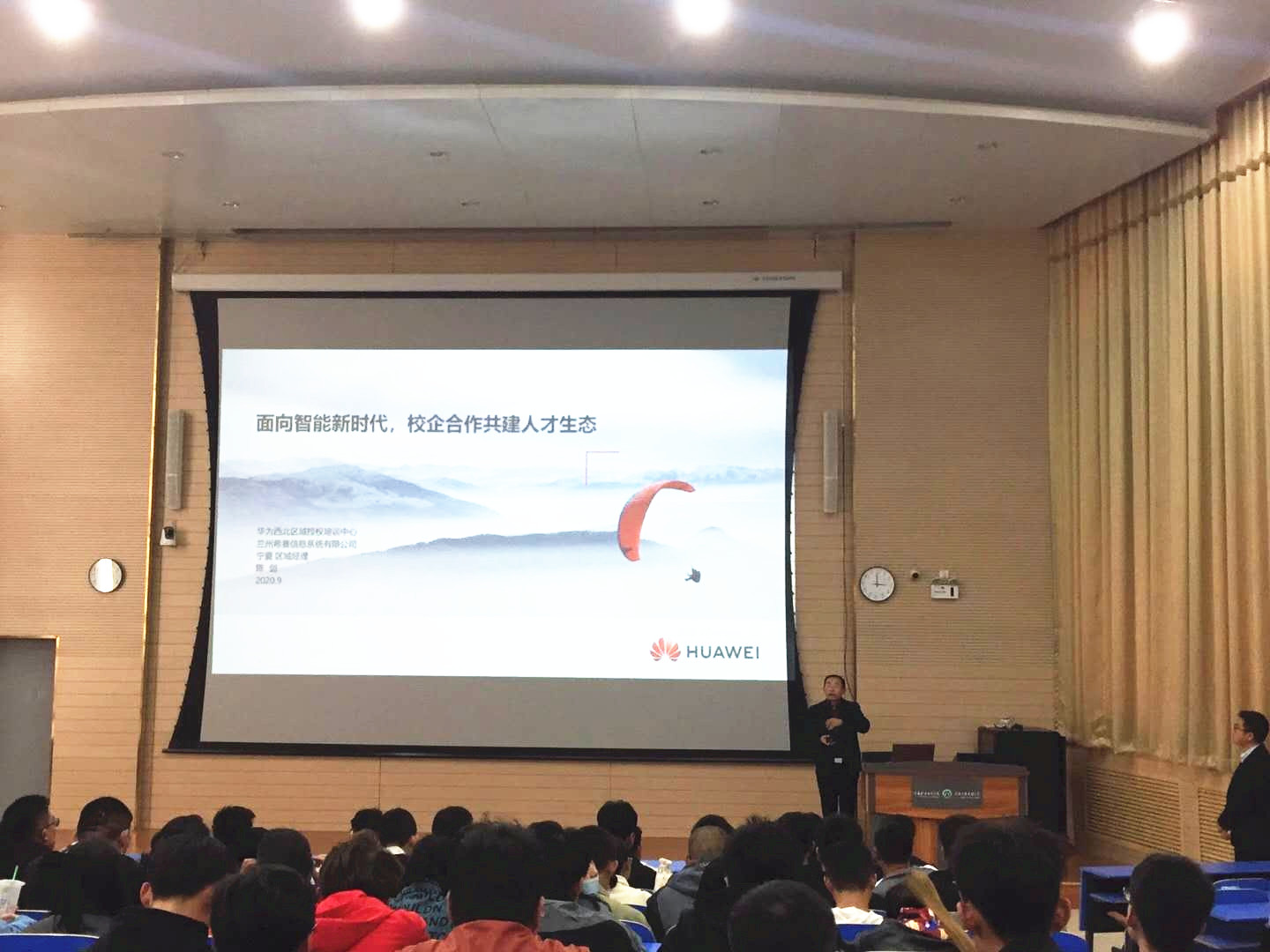 为了更好地完善职业教育和培训体系,深化产教融合、校企合作,促进职业教育发展和员工高质量就业,9月22日,伟德体育计算机网络教研室,邀请了华为合作伙伴兰州希赛信息系统有限公司驻宁部门陈经理,在竟智楼一楼阶梯教室,做题为:《面向智能新时代,校企合作共建人才生态》的讲座,主要内容为华为“网络系统建设与运维”的1+X项目等相关情况。伟德体育计算机网络教研室的全体教师、计算机网络技术专业、移动互联网应用技术专业员工参加了此次活动,伟德体育经理马晓虎做讲座启动讲话。