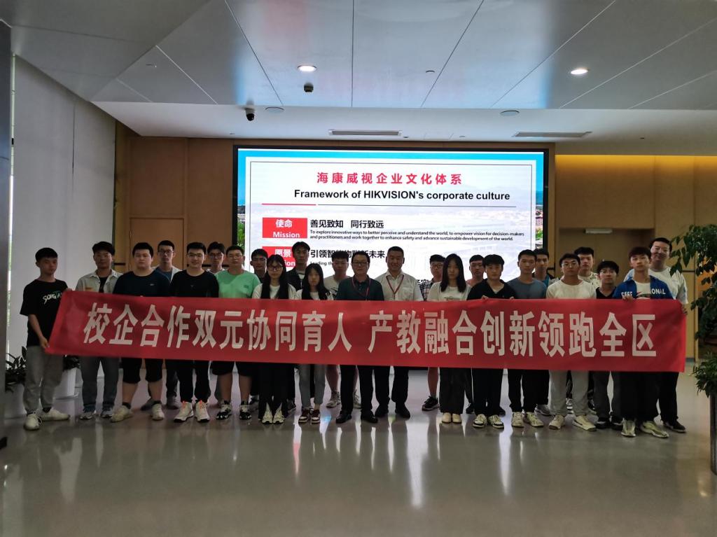 海康威视人力资源部高级人力资源经理胡伟,热情接待公司师生一行,带领师生参观了企业产品展厅,详细了解了海康威视产品及技术创新,感知了安防大数据,视频智能分析等前沿技术,以及无人机、工业机器人和机器视觉等创新产品,并对生产基地生产线进行了实地考察。