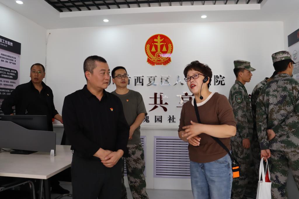 随后,郭红梅书记围绕门对门、心连心、面对面、手牵手四个方面,引领大家共同参观了玫瑰园社区枫桥式共享法庭、便民服务站、志愿服务中心、中华文化符号展示墙、“三交史话”展示区、民族精神馆等,观看了民族团结创建专题片。