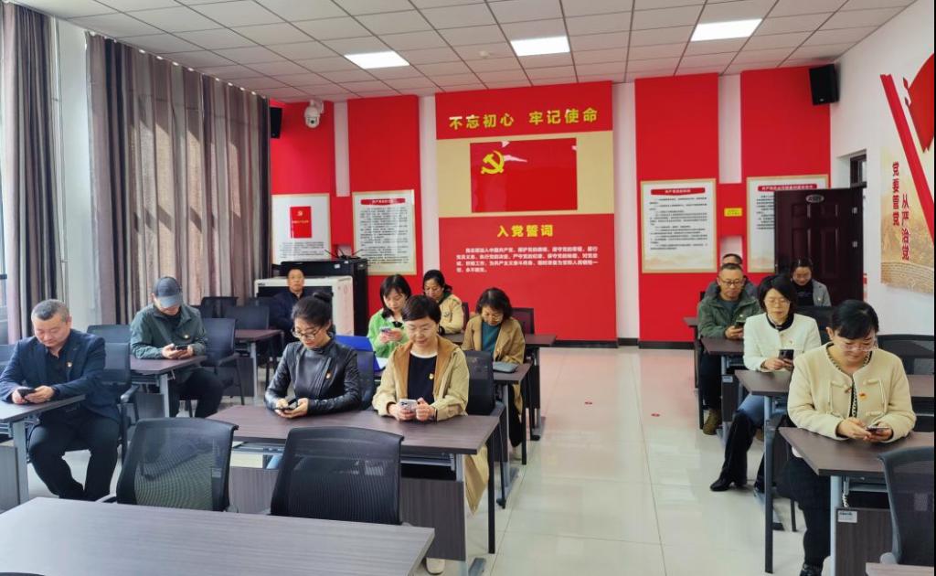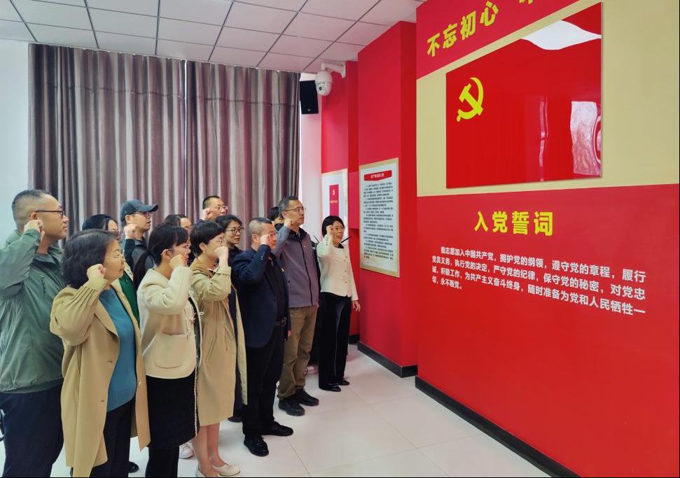 主题党日活动中,党员同志们一起交纳党费,并在领誓人刘艳书记的带领下,高举右手,面向党旗重温入党誓词:“我志愿加入中国共产党,拥护党的纲领,遵守党的章程,履行党员义务......”,铿锵坚定的入党誓词,凝聚了每一个党员的信仰,回荡在每一个党员的耳边,始终引领着我们前进。