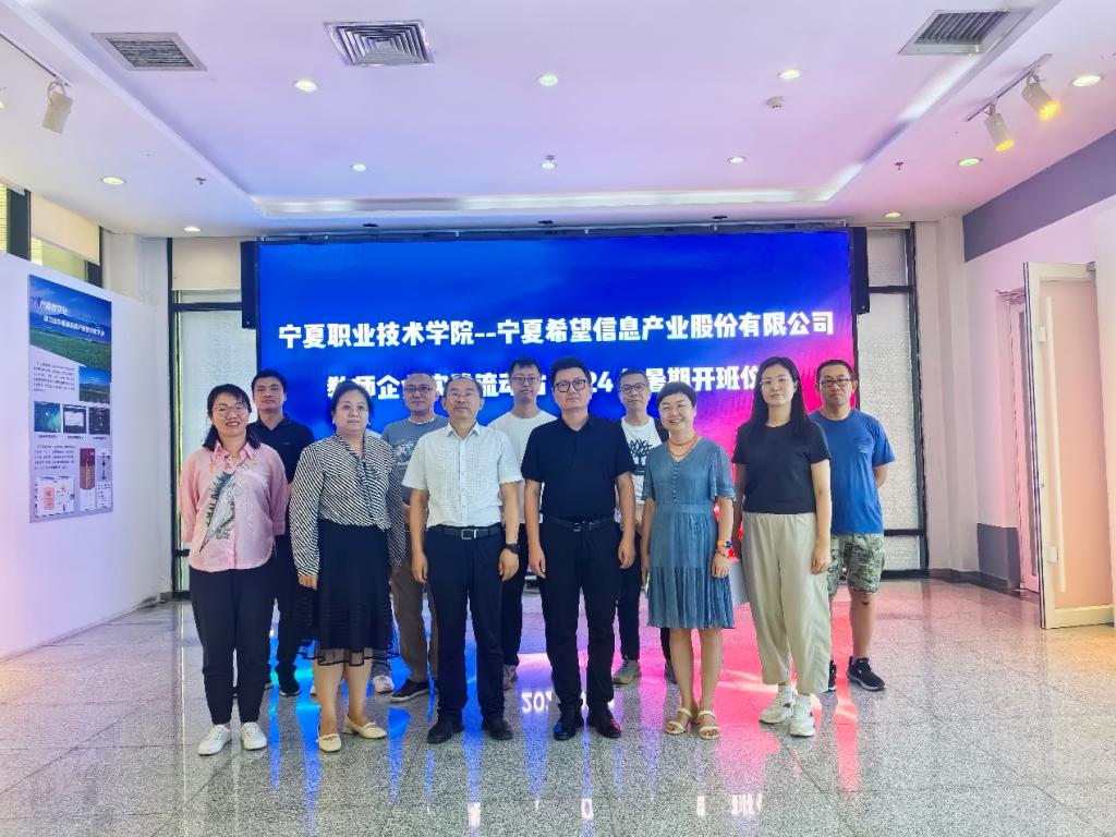 为进一步深化校企合作,提升伟德体育教师的实践教学能力和科研水平,2024年7月11日,伟德体育与宁夏希望信息产业股份有限公司联合举办的教师企业实践流动站暑期开班仪式在希望软件公司隆重举行。伟德体育经理马晓虎、副经理刘艳、凌旭东、鲁菁、企业代表及伟德体育13名专业课教师参加了开班仪式。