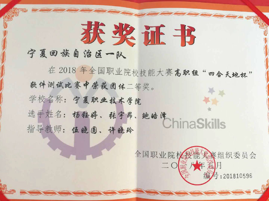 5月29日,2018年全国职业院校技能大赛高职组“软件测试”赛项,在许昌职业技术公司拉开帷幕,来自全国的96个代表队500余名选手参赛。 由伟德体育伍晓圆、许晓玲两位老师指导的杨钰婷、张宇昂、鲍皓泽三位同学参加了此次比赛。经过选手的不懈努力,最终在该项目比赛中获得二等奖。