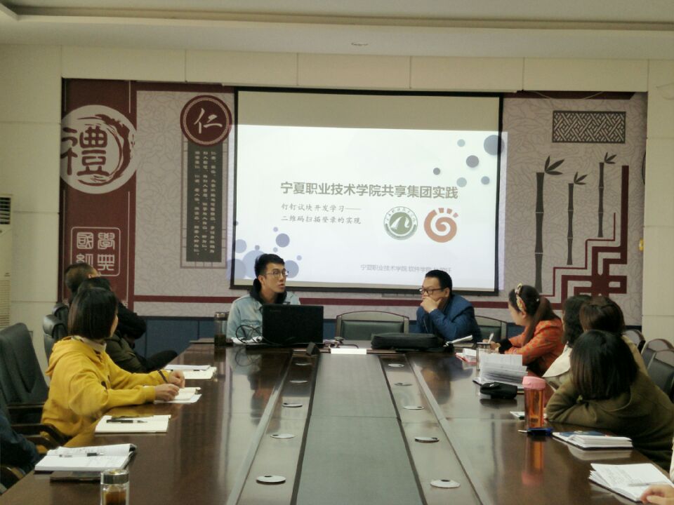 2018年7月—8月,在公司统一安排下,伟德体育5名教师赴宁夏共享集团有限责任公司进行了为期一个月的企业实践。杜朋轩老师作为本次深入企业实践代表之一,在本次汇报会上以“钉钉试块开发学习——二维码扫描登录的实现”为主题,将实践心得体会进行了分享。在为期一个月的实践中,老师们参观了共享集团软件开发分部,学习了钉钉移动端、PC端软件、Visual Studio 2013软件,并用HTML5与JavaScript语言进行逻辑编程。整个顶岗实践期间,伟德体育教师们全程定时定点上班下班,积极参与企业专家交流互动,踏实认真完成了各项实践任务。
