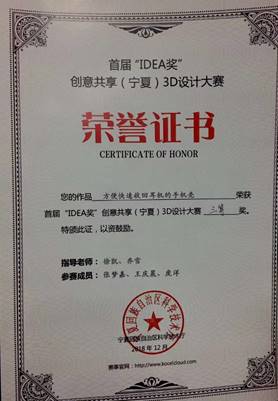 伟德体育员工荣获全区“首届‘IDEA’奖创意共享(宁夏)3D设计大赛”三等奖佳绩
