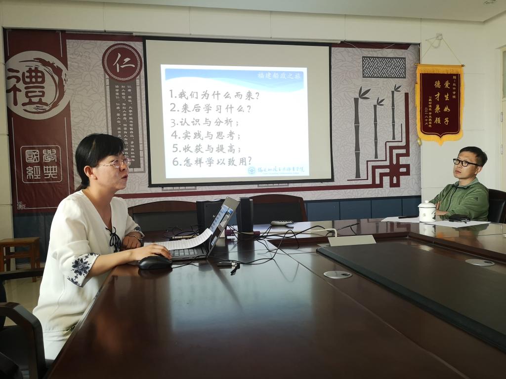 会上,三位教师就本次挂职学习经历,从所见所感、体会认识、收获心得等方面进行了详细汇报。他们认为福建船政作为一所百年老校,有着深厚的文化底蕴和良好的办学口碑,其“精益求精,密益求密”的办学理念以及教育质量观给他们留下了深刻的印象。乔雪老师认为本次的学习让她在思想意识、专业教学以及课堂教学等方面进行了深入的思考,在其公司的信息工程系深入了解了其相关专业的课程体系、人才培养及校企合作等方面,并就具体细节进行了交流和探讨;荀丽丽老师认为福建船政公司提出的“提高技能强基础,提高素养抓业务,更新观念实技能,开阔视野强效能”理念,是作为新时代的每一位教师应思考并且长期实践的内容。陆兆翔老师则从员工管理、思政教育以及党建团建方面进行了分享和交流,他们都认为通过此次挂职学习,收获了很多宝贵的教学经验,同时引发了自己对教学工作过程中遇到的问题进行了深入的思考,思路理念得到了较大的转变。