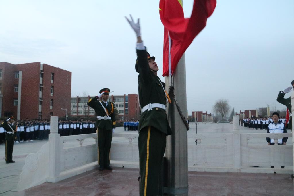 “全体肃立,奏国歌,升国旗”,随着马晓玲老师的口令,雄壮的《义勇军进行曲》响起,五星红旗冉冉升起。全体师生向国旗行注目礼,现场庄严肃穆。国旗升起见证中华民族伟大复兴的崛起,国歌响起铭记中华儿女勤劳致富的光荣。
