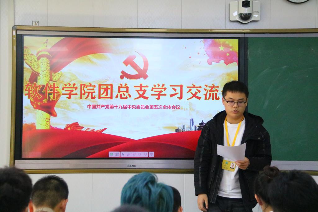 活动伊始,吴越老师以图文的方式,简明扼要的向同学们阐述了党的第十九届中央委员会第五次全体会议精神。随后,同学们现场回看了会议视频,深入学习了相关文件,并以“小组共议,共绘蓝图”的形式进行热议。刘天伟和陶宇轩两位同学,则以分享的方式,向同学们讲述了他们通过学习会议精神的心得。活动最后,吴越老师发出倡导,提议各班团支部,能继续以班会、研讨会、交流会等多种形式,继续深入学习并领会全会精神。
