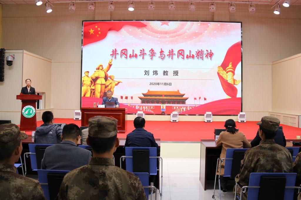 刘炜以《井冈山斗争与井冈山精神》为题,结合在井冈山学习培训经历,旁征博引、娓娓道来。通过唱歌曲、看视频、吟诗瑶、学讲话等多种形式,以大量客观史实为线索带领师生重温了井冈山革命斗争的历程,展示了以毛泽东同志为代表的中国共产党人创建井冈山革命根据地的丰功伟绩,深刻阐述了老一辈无产阶级革命家和无数英烈用鲜血和生命培育的井冈山精神的深刻内涵及其时代价值,全面解读了井冈山斗争对中国革命道路的探索和抉择、中国共产党和人民军队成长的历史意义和现实意义。他强调,全体师生要牢记井冈山精神的灵魂是坚定执着追理想,核心是实事求是闯新路,基石是艰苦奋斗攻难关,根本是依靠群众求胜利,要从历史和现实、理论和实践、国际和国内的紧密结合上增进对中国共产党为什么“能”、马克思主义为什么“行”、中国特色社会主义为什么“好”的认识和理解,坚定中国特色社会主义道路自信、理论自信、制度自信、文化自信。