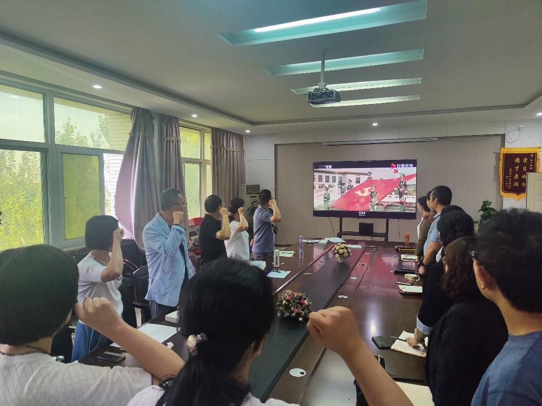 会议开始,教师党员跟唱入党誓词主题歌曲《我宣誓》,大家深情庄重、声音铿锵,用铮铮誓言彰显党员本色,牢记党员使命,永葆党员初心。