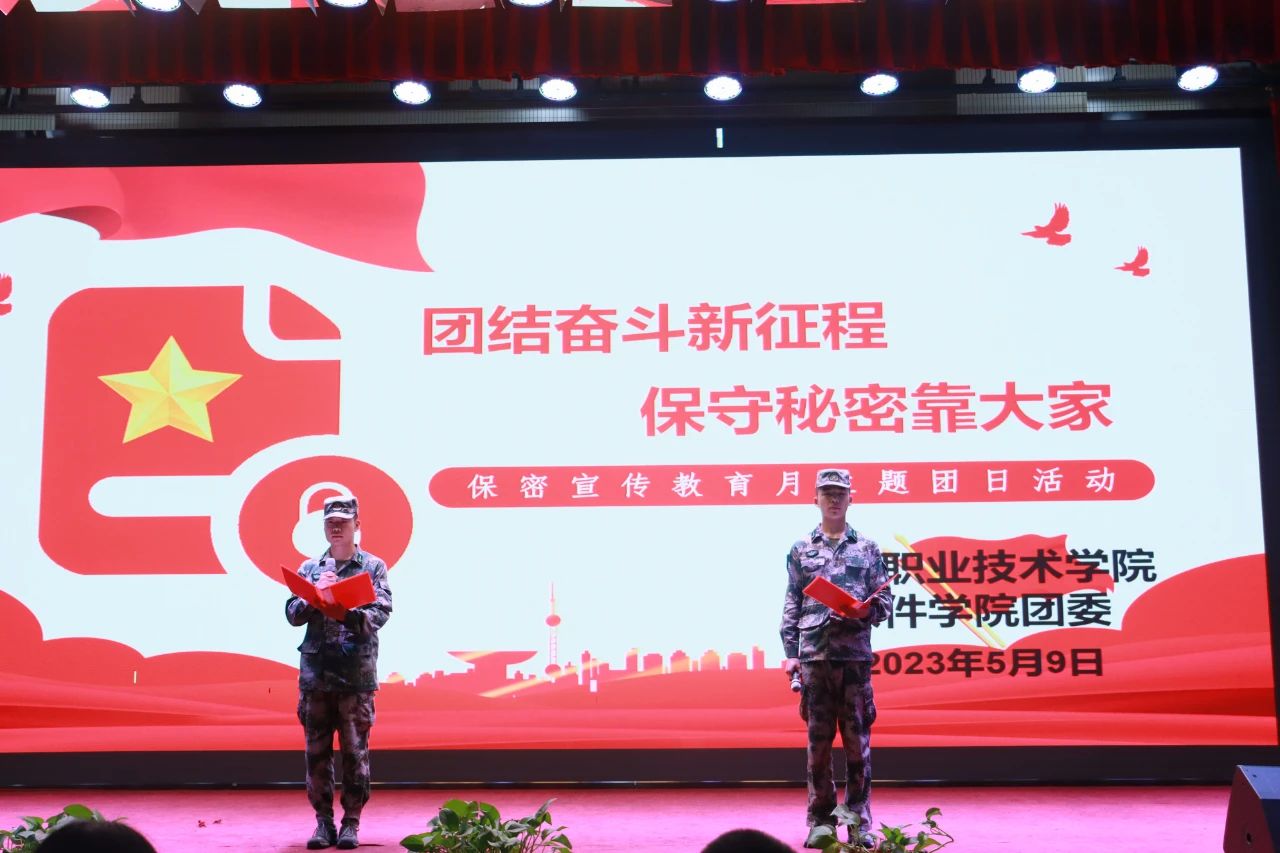 5月9日下午,由校团委主办伟德体育团委承办的“团结奋斗新征程,保守秘密靠大家”——保密宣传教育月主题团日活动在纺织报告大厅召开。校团委书记张淼、公司党总支书记冯玲、副书记尤敬飞、校团委唐渊、徐凯、伟德体育张洁及2021级、2022级全体军士生参加了本次活动,冯佳乐、李承泽主持。