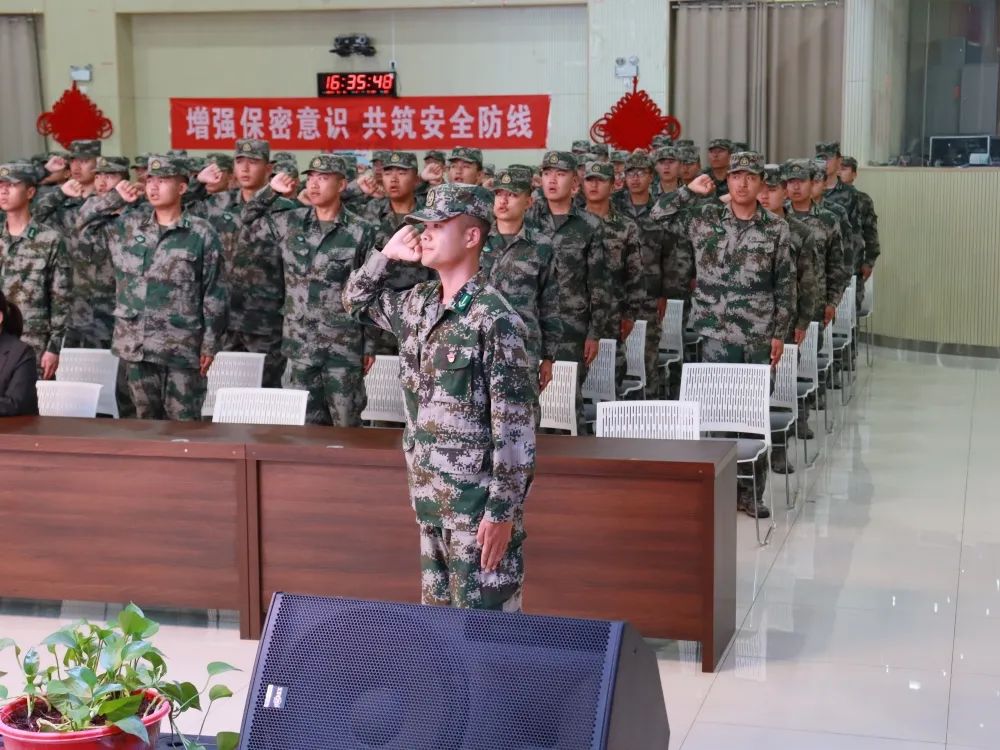 作倡议环节由军士生王江带领全体军士生保密宣誓:我是一名军士生,肩负着党和国家赋予的特殊使命。我庄严宣誓:......坚决履行保密责任义务,坚定维护国家安全和利益......请党放心,强军有我!铮铮誓言展现了公司军士生立誓守护国家秘密安全的决心。