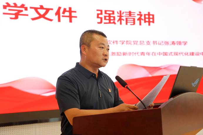 “学文件,强精神”环节。公司党总支书记张涛领学《激励新时代青年在中国式现代化建设中挺膺担当》,通过理论学习,同学们加强了思想统领,凝聚了奋发力量,提升了政治素养。