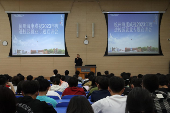 随后,海康威视人力资源部工程师黄奇成,就海康威视企业背景、发展历程、招聘岗位、薪资待遇公司发展方向等几个方面向同学们进行了宣讲。同学们根据自己的专业定位、兴趣爱好与企业宣讲人进行了深入的交流与沟通,现场气氛活跃,反响热烈。
