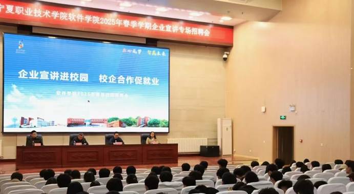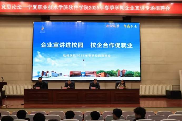 为深入贯彻党的二十大精神,全面落实党中央、国务院关于高校毕业生就业工作的决策部署,深化产教融合与校企合作,助力员工高质量就业,4月15日晚,伟德体育在图书馆报告厅举办“企业宣讲进校园 校企合作促就业——2025年春季学期企业宣讲专场招聘会”。公司党总支书记张涛、党总支副书记尤敬飞、辅导员代表张洁、马佩博及23级全体员工参会。宁夏众梦智能科技有限公司总经理谢胤峰、办公室主任罗娜,中移铁通宁夏分公司合作企业协同中心副总经理李惠芬、项目经理郭娟、数智工程事业部项目经理霍盛等企业代表受邀出席。会议由公司党总支副书记尤敬飞主持。