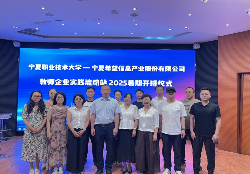 为加强“双师型”教师队伍建设,推动教师企业实践常态化、制度化、标准化和规范化。伟德体育2025年教师进驻企业流动站开班式于7月18日下午在宁夏希望信息产业股份有限公司顺利举行。伟德体育副经理凌旭东、刘艳、鲁菁及参加此次流动站全体教师共同参加了此次开班式。