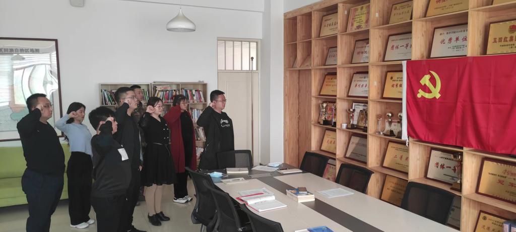 活动之初,员工党支部全体成员不忘入党初心,在王瑞同志的带领下,面对党旗,重温入党誓词,端正入党动机,恪守党员纪律,强化党员意识。